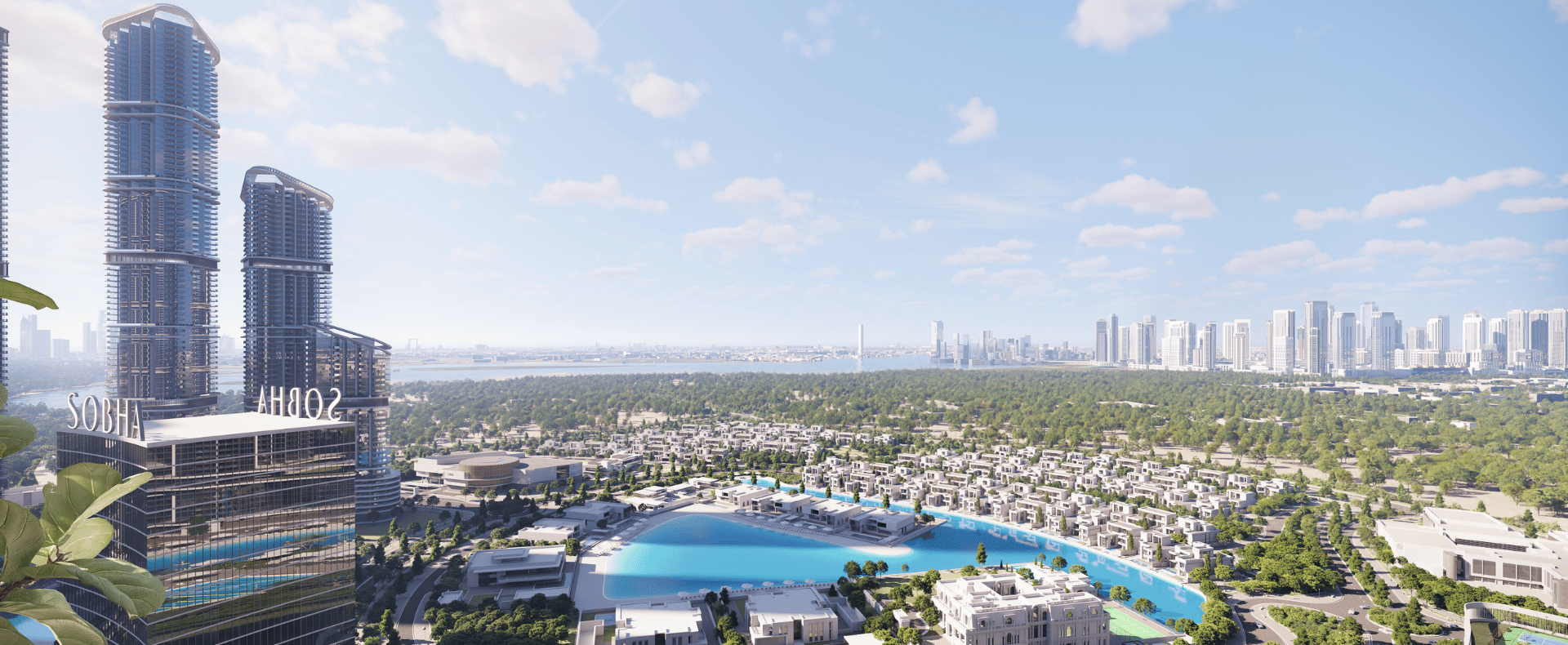 320 Riverside Crescent by Sobha—buy 1–3 BR apartments with sweeping lagoon/community views, wellness-driven amenities and dramatic sky gardens (L19, L48) in Sobha Hartland II.