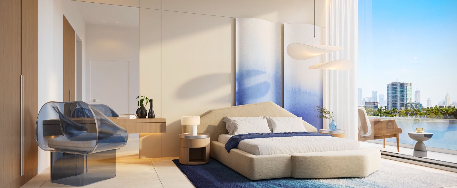 Located on Island A, the development rises at the core of the archipelago, placing residents minutes from Downtown Dubai, DXB Airport, Palm Jumeirah, La Mer Beach, and Dubai Marina.