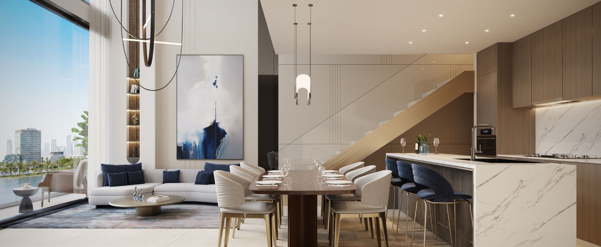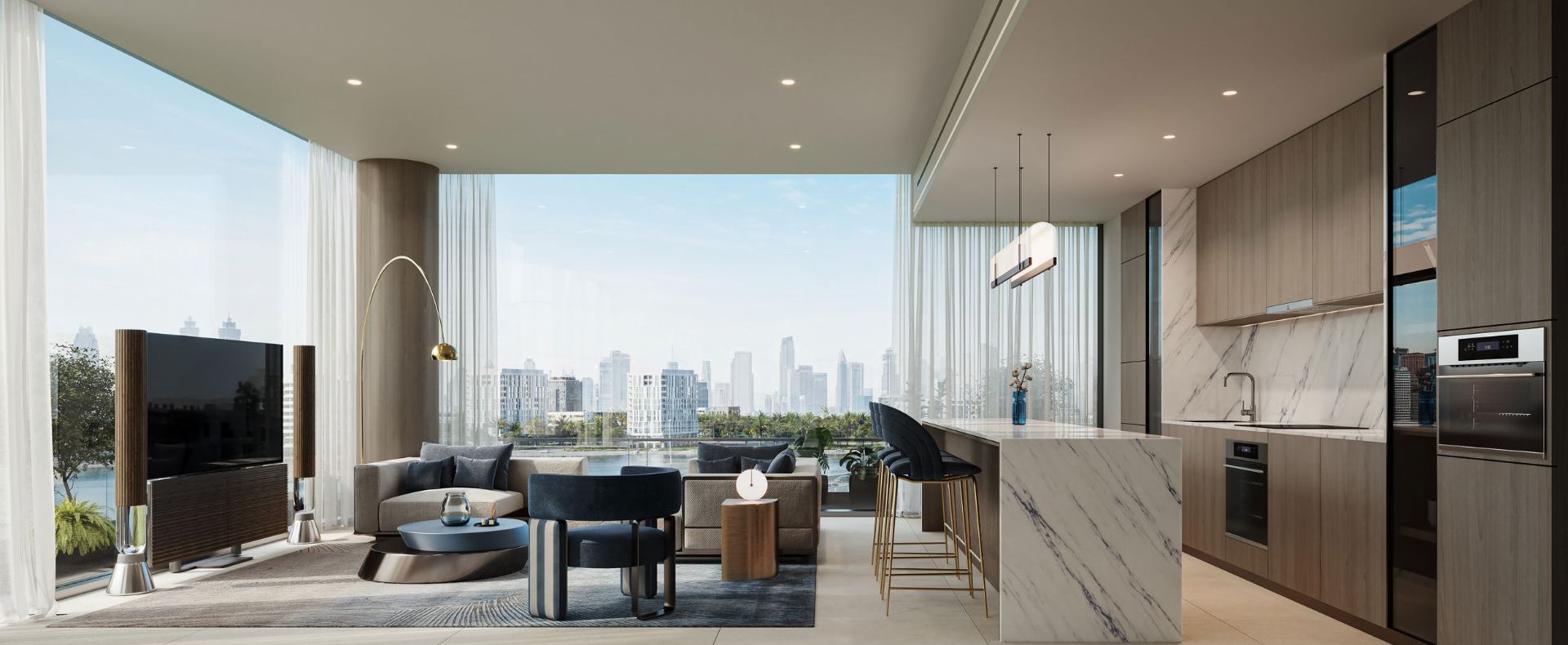 Layouts: Spacious floorplans with panoramic windows, open-plan kitchens, and refined finishes