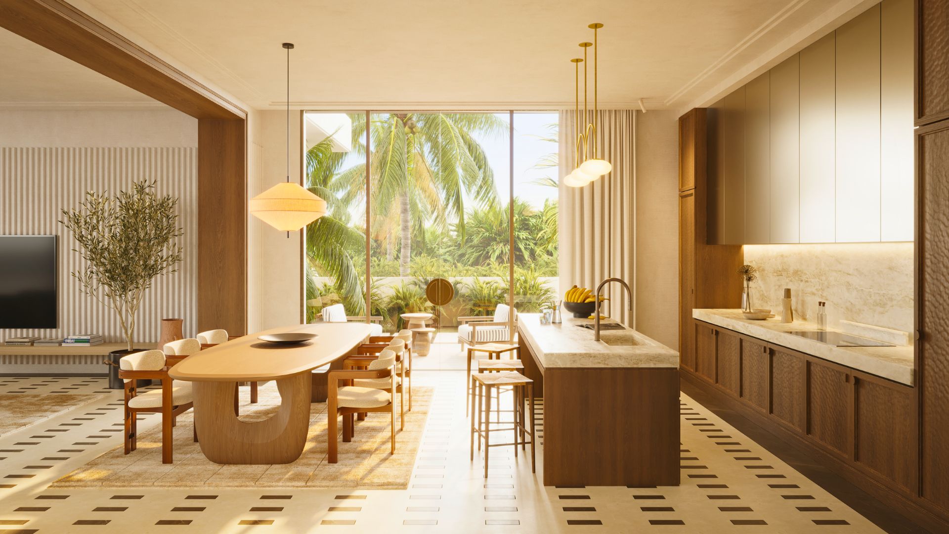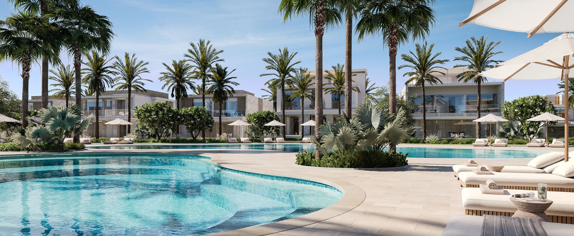 Beach club, pools, fitness facilities, BBQ & family zones