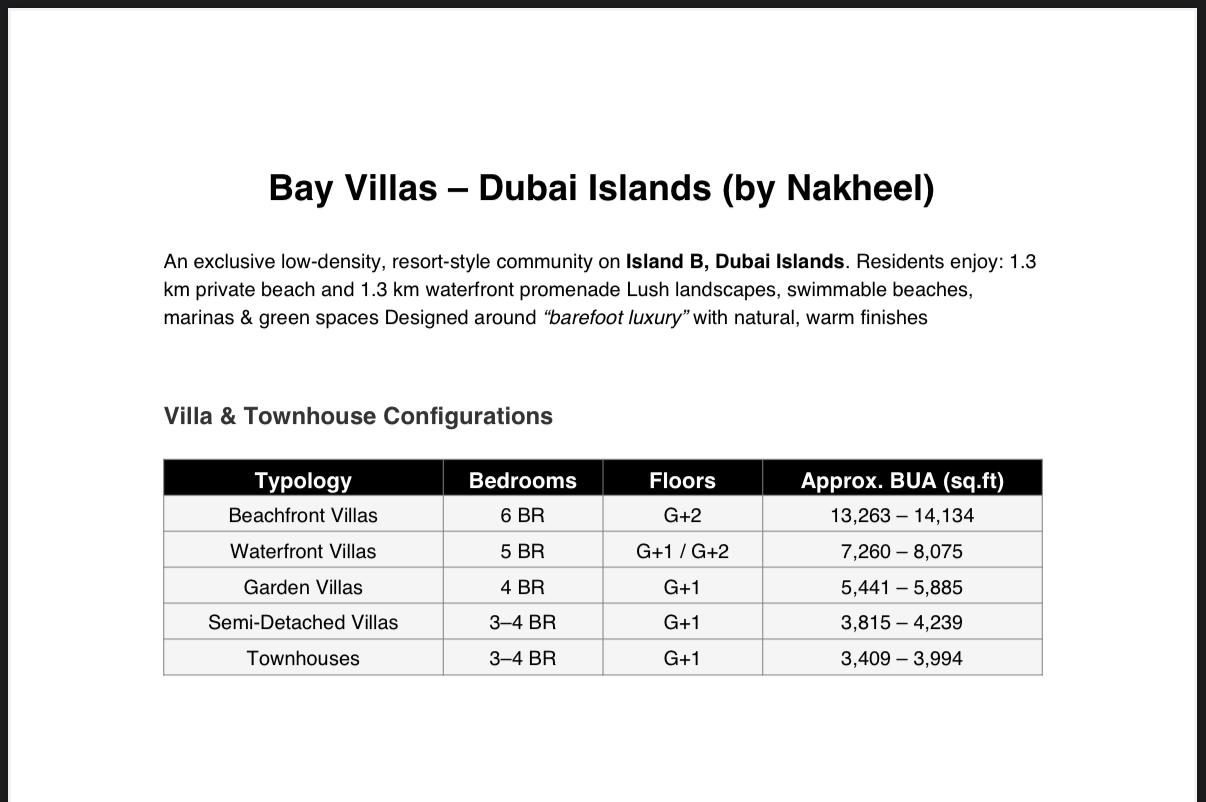 Bay Villas by Nakheel is an exclusive low-density, resort-style community on Island B, Dubai Islands, offering a rare mix of 3 to 6-bedroom villas and townhouses. Starting from AED 4 million, Bay Villas brings together spacious modern design, beachfront luxury, and direct access to some of Dubai’s most beautiful landscapes.