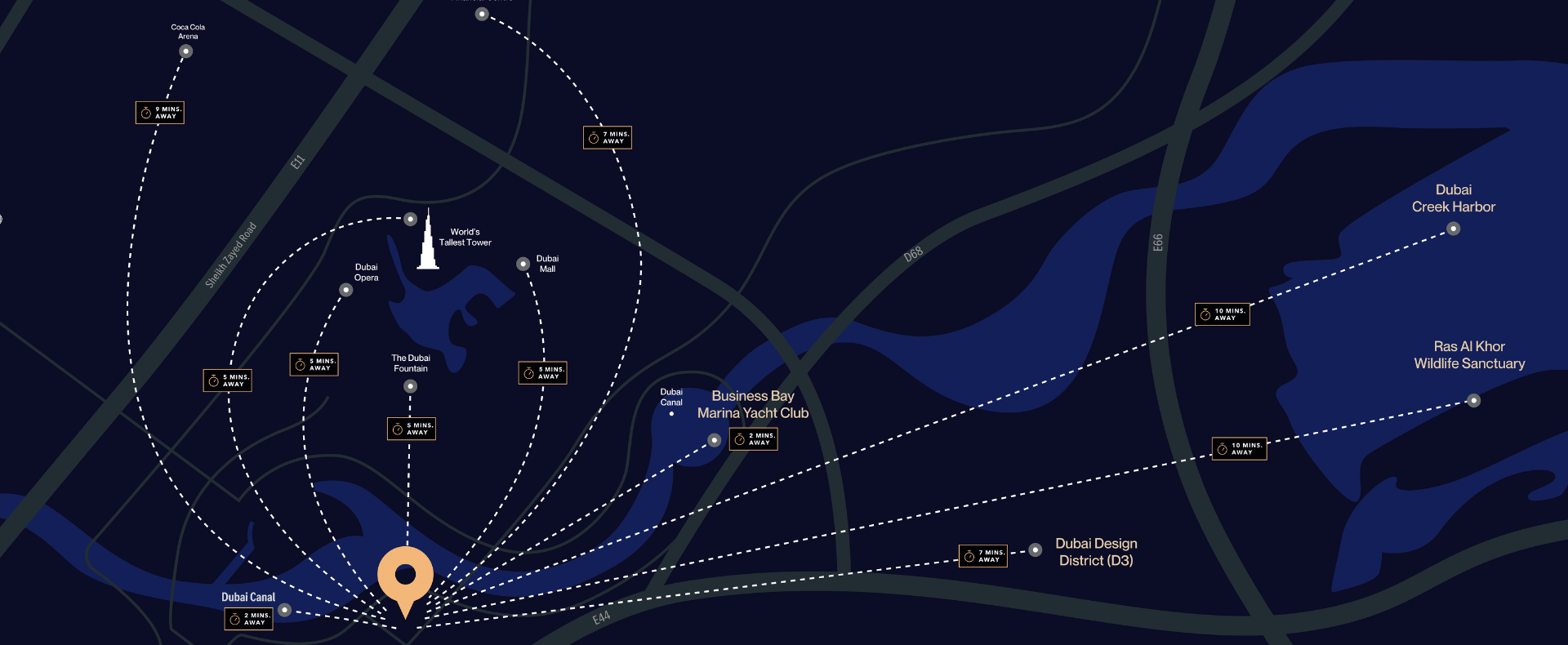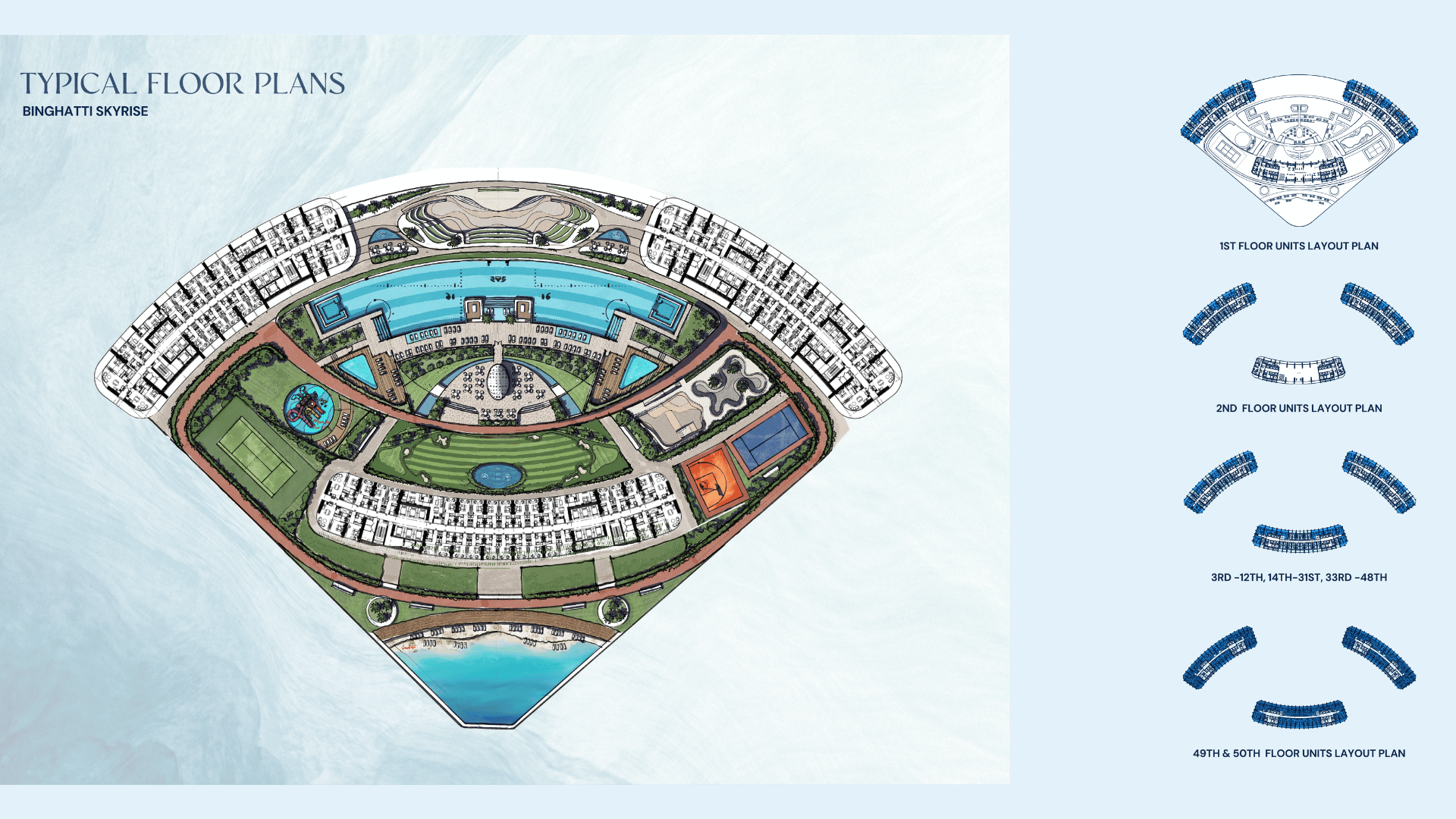 Residents enjoy a resort-caliber lifestyle with amenities such as an infinity podium pool, artificial beach, gym, tennis and paddle courts, jogging tracks, spa & yoga zones, retail outlets, and landscaped gardens. Strategically located just minutes from Burj Khalifa, Downtown, Dubai Mall, and the Business Bay Metro, this project offers easy connectivity and strong capital appreciation.