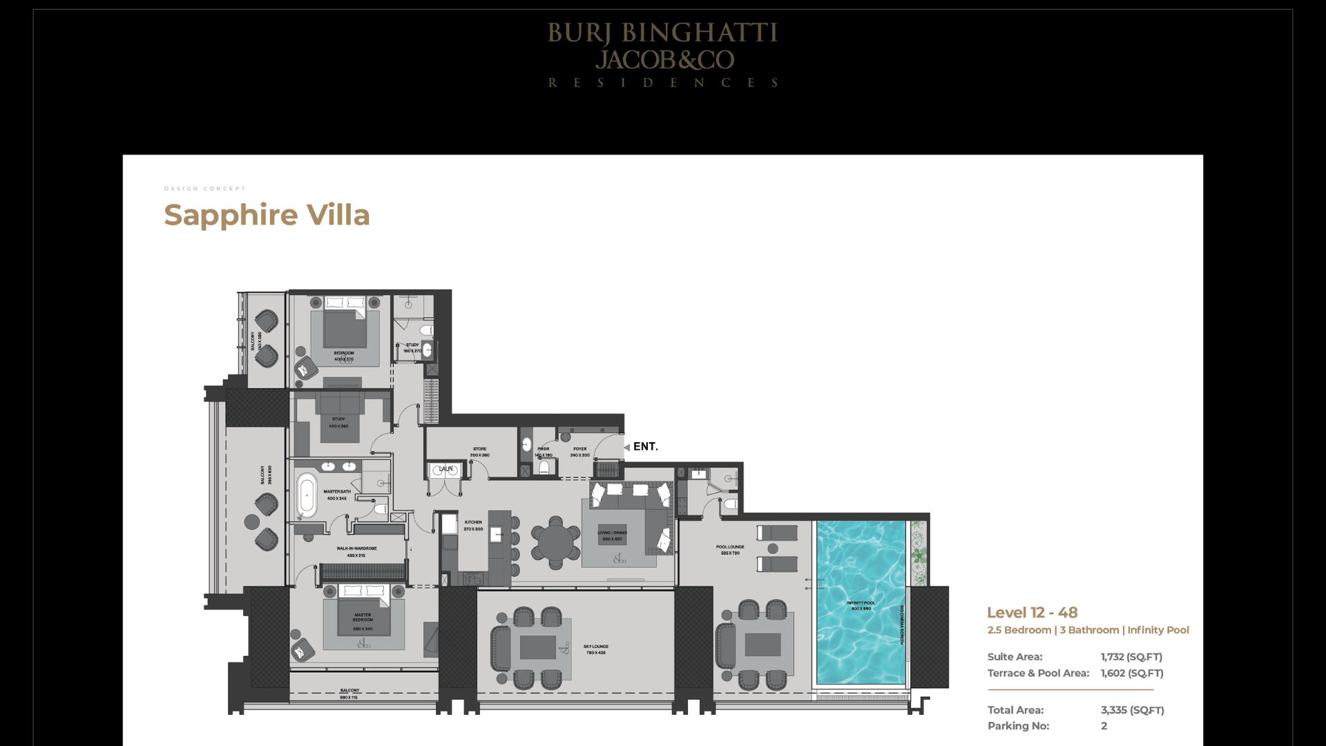 Unit Types & Sizes – Sapphire/Emerald Villas: ~3,323 sq ft (2–3 BR)