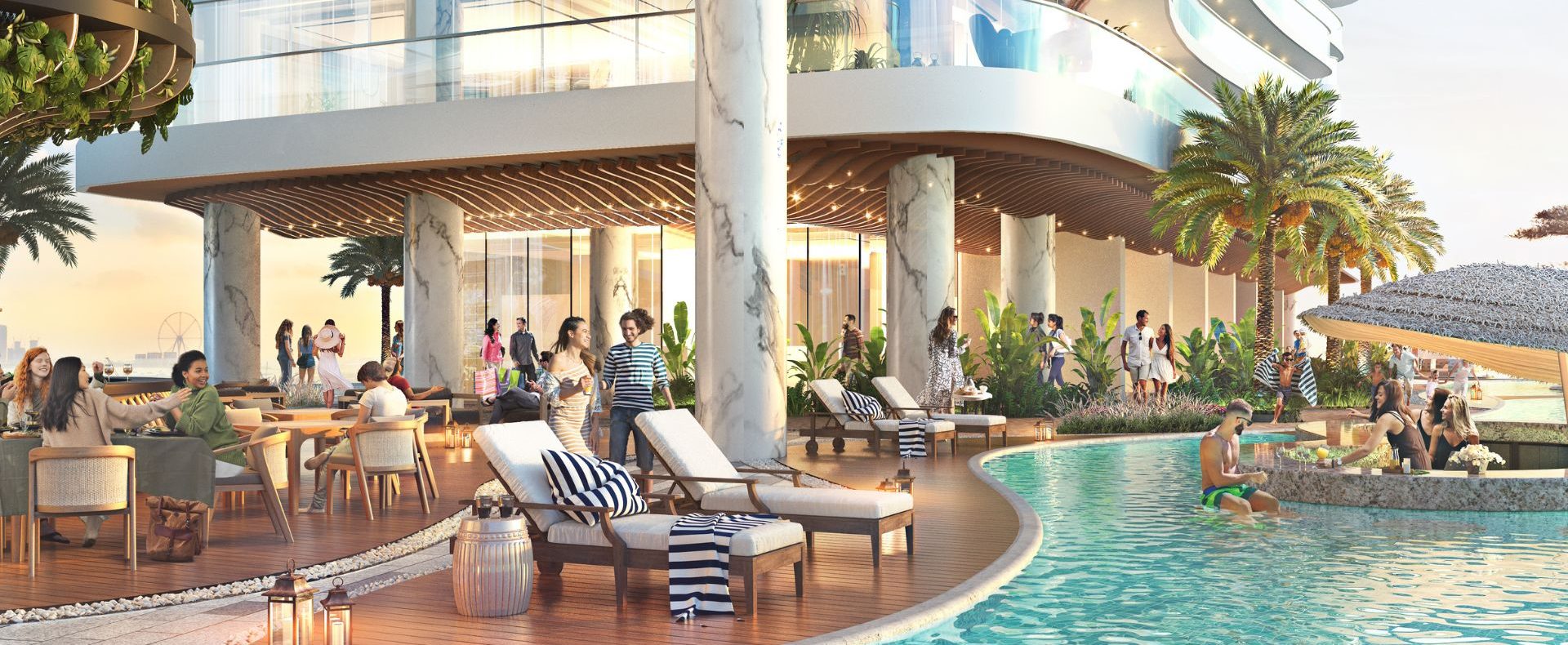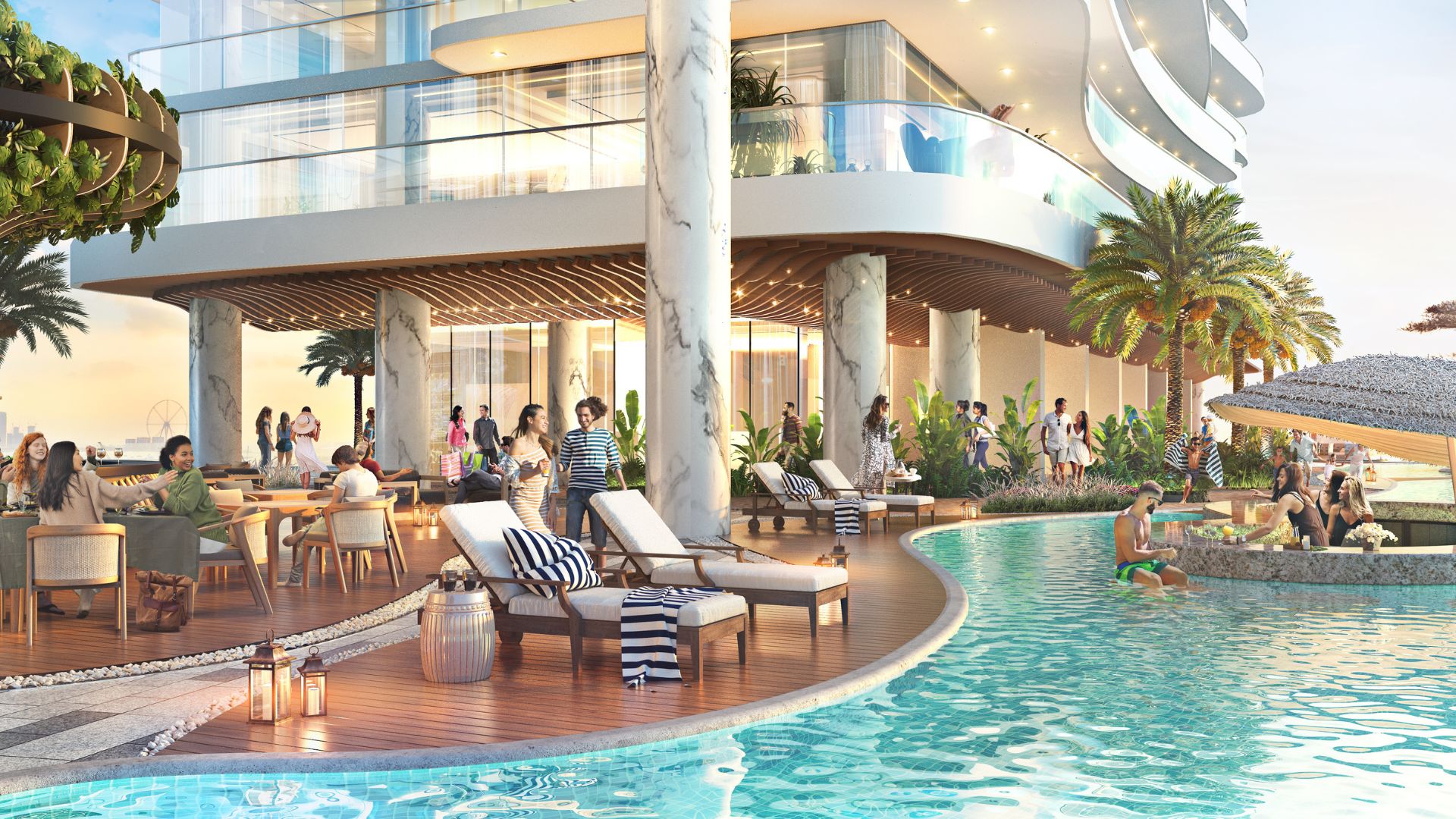 A 49-storey architectural masterpiece featuring 1–5 BR ultra-luxury apartments, branded duplexes, and Skycrest Collection. Sizes begin from 733 sq ft (1 BR) up to over 3,375 sq ft (3 BR) and larger. Starting price is AED 7.35M, with a 20% down, 60% during construction, 20% on handover payment plan, and handover expected by Q1 2028. World-class amenities include a Cavalli Museum, art and fashion studios, floating pods, tropical spa areas, and infinity pools.