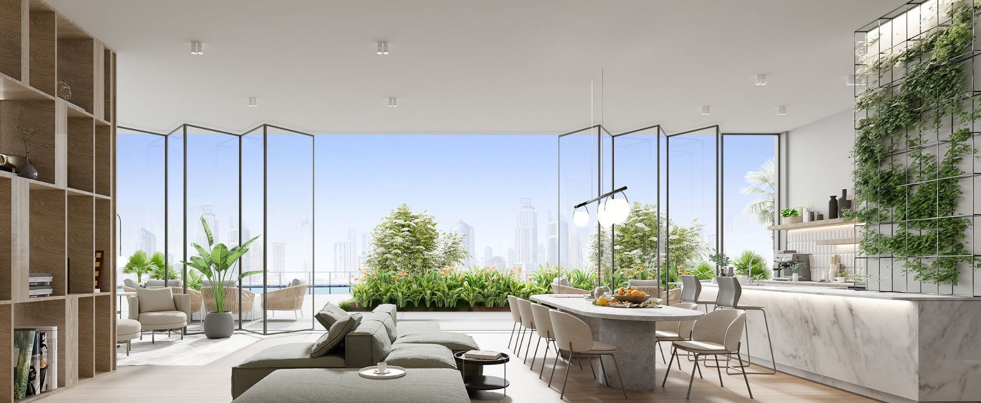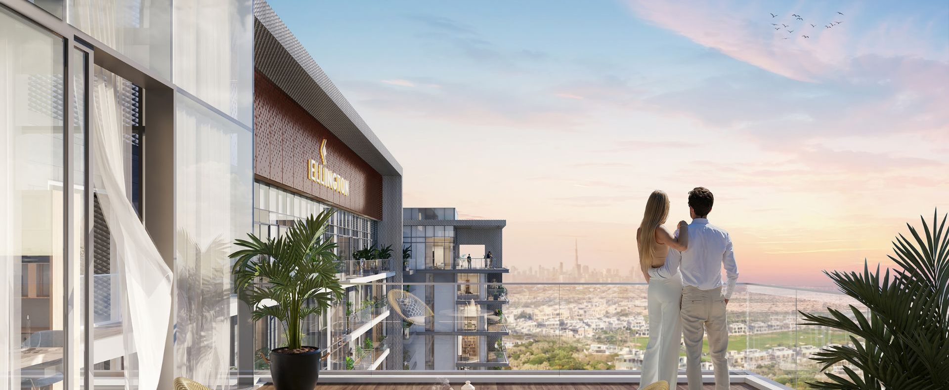 The 12-storey tower blends floor-to-ceiling glass, open-plan layouts, and panoramic golf & skyline views. Amenities include an infinity pool, fitness & yoga areas, spa rooms, landscaped gardens, social lounges, and family spaces.