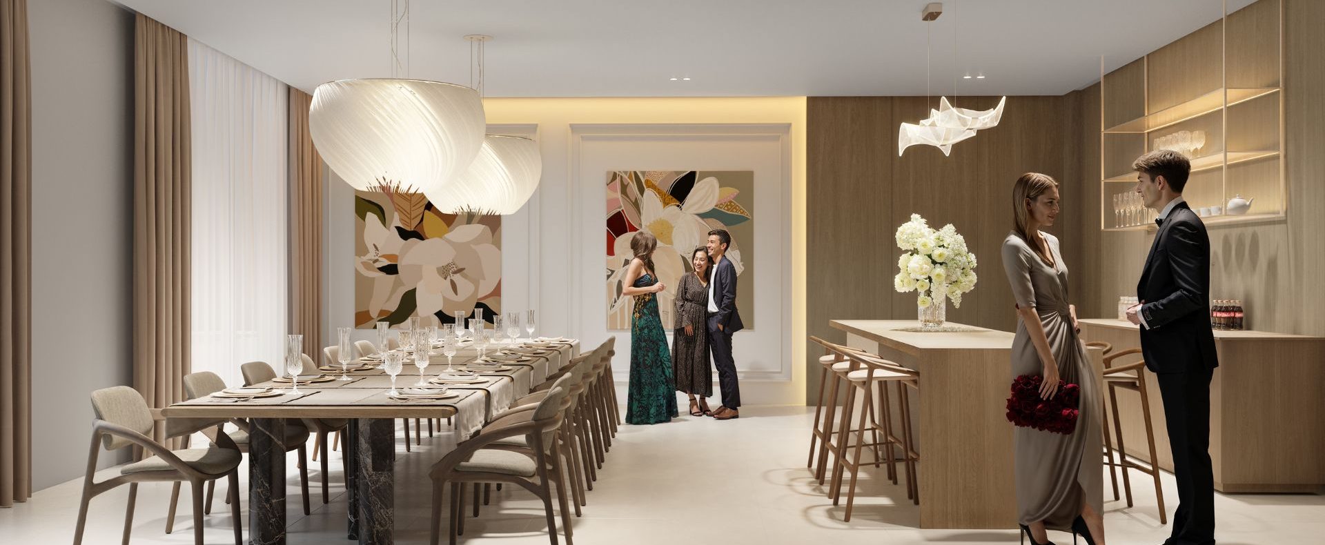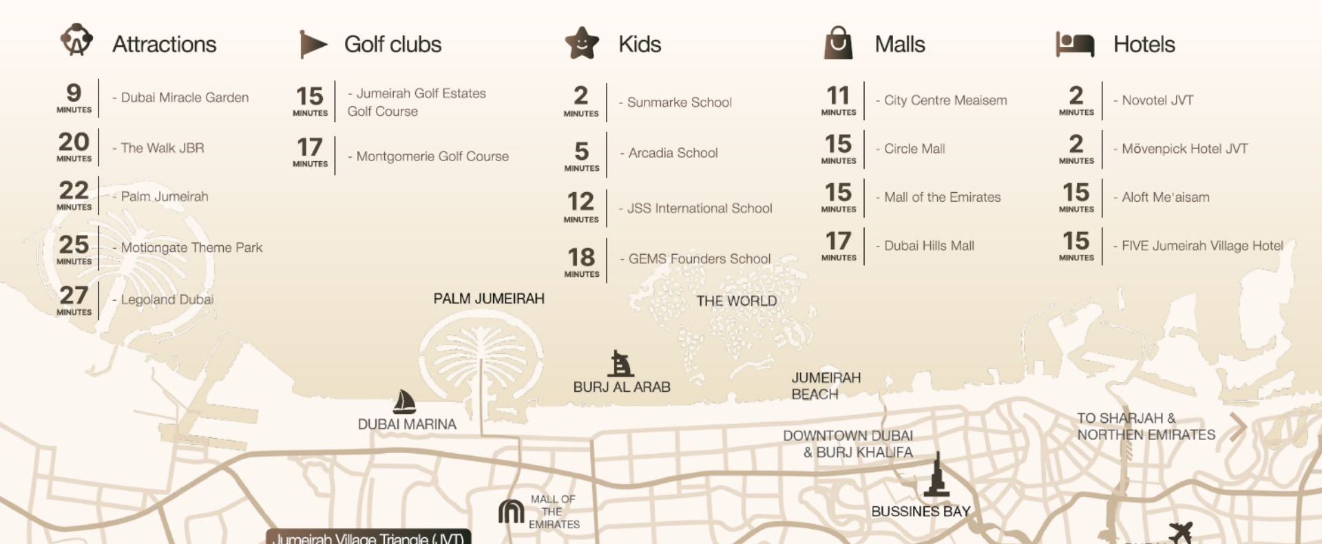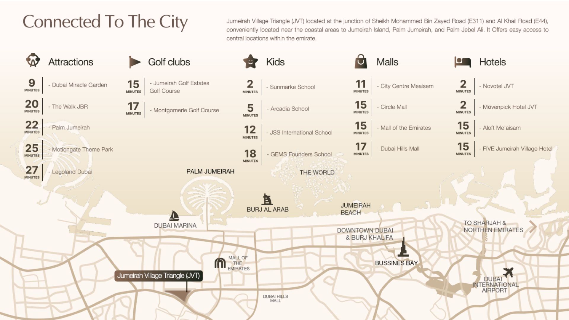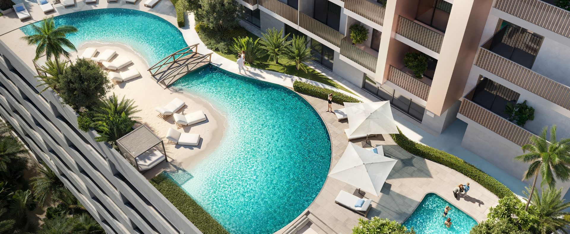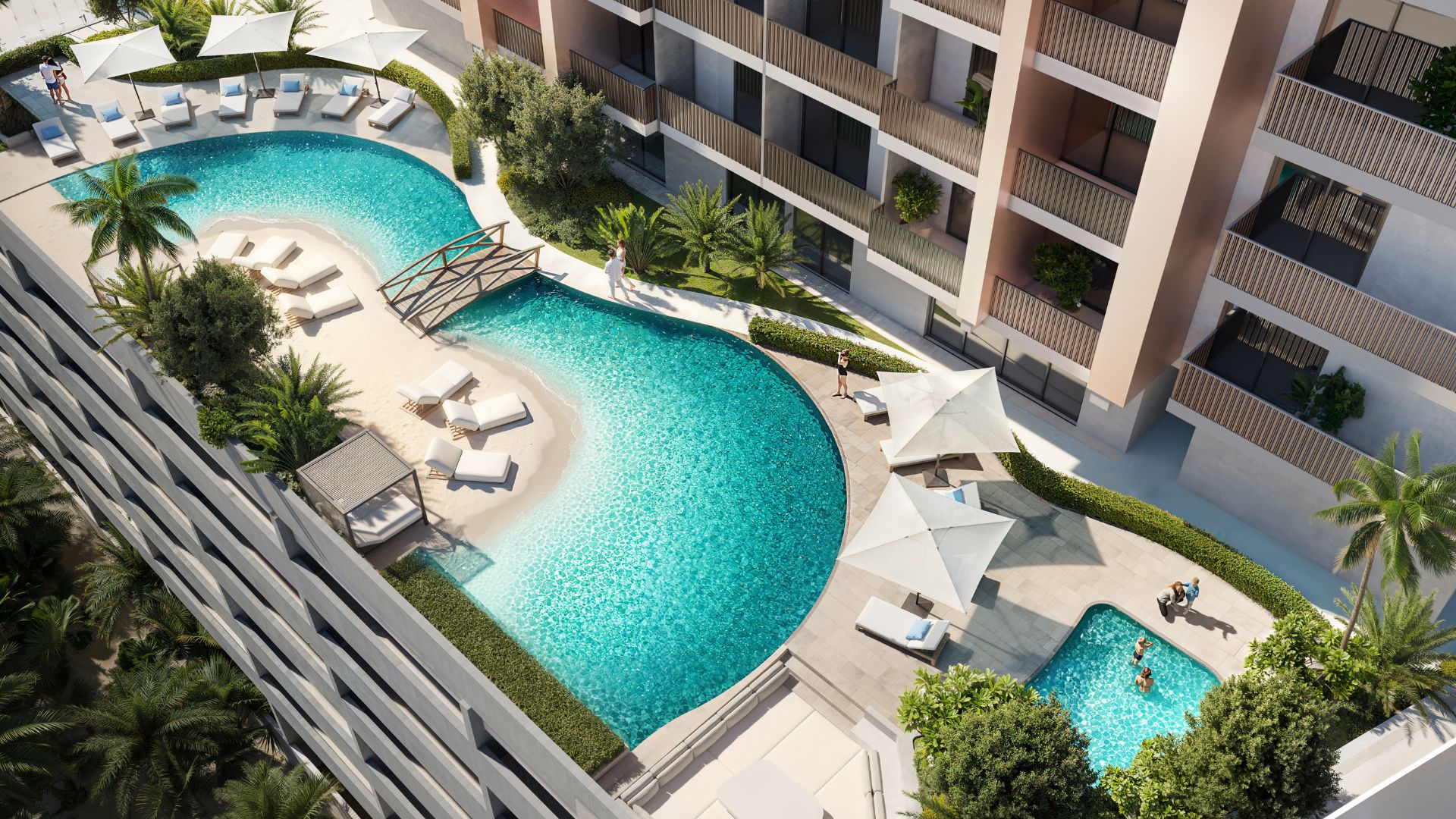 Residents enjoy resort-style perks including sky infinity and lagoon-style pools, rooftop cinema, gym, yoga zones, paddle court, kids play area, jogging trails, and retail outlets. The project promises 7–8% rental ROI, annual rental returns starting at AED 55K, and eligibility for a 10-year Golden Visa, making it ideal for both families and investors.