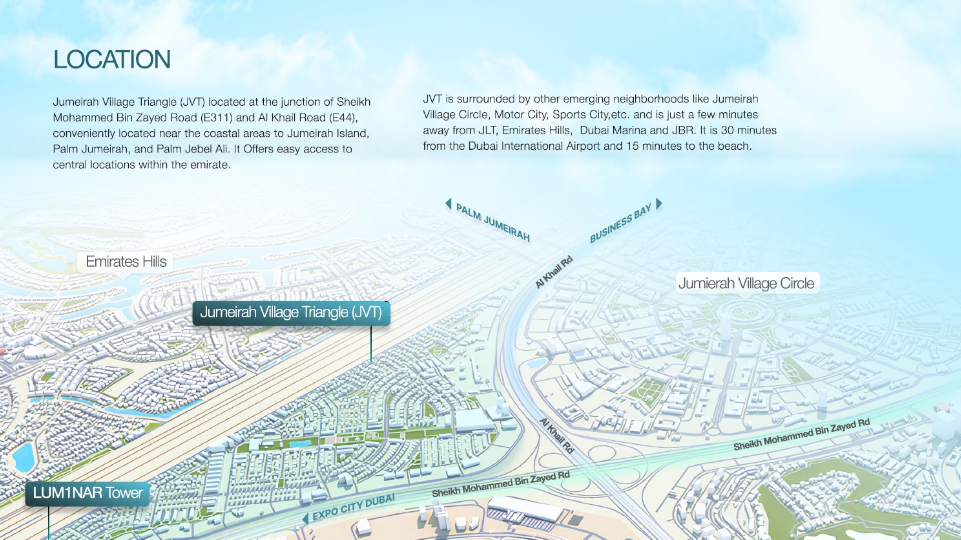 Discover LUM1NAR Tower 1 by Object 1 within the tranquil Jumeirah Village Triangle (JVT)—offering premium 1 & 1.5 BR apartments (576–1,267 sq ft) with prices from AED 887K. Enjoy a flexible 60/40 payment plan, with a 20% booking deposit, 40% during construction, and 40% upon handover in Q4 2026. The 20-storey tower houses 196 curated units set within a matte-glass, contemporary façade accented with warm timber effects.