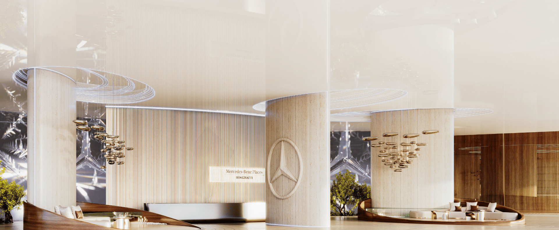 Mercedes-Benz Places by Binghatti Developers is the world’s first Mercedes-branded residential tower located in Downtown Dubai—an iconic 65-storey hyper-tower reaching 341 m tall. It features luxury 2 to 4-bedroom apartments (approx. 1,837–3,285 sq ft) and exclusive 2–7-bedroom penthouses (up to approx. 18,101 sq ft), all with smart technology, superior materials, and private swimming pools. Prices start from AED 8.8 million. The project offers a 70/30 payment plan and is on track for handover in Q4 2026. Residents benefit from panoramic Burj Khalifa and canal views, sky infinity pool, spa, gym, concierge, and EV charging with photovoltaic facade—making it a premier investment in one of Dubai’s most coveted addresses.