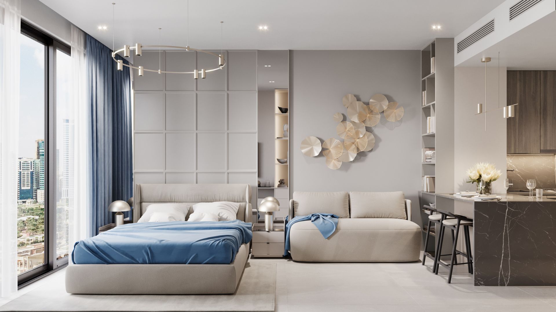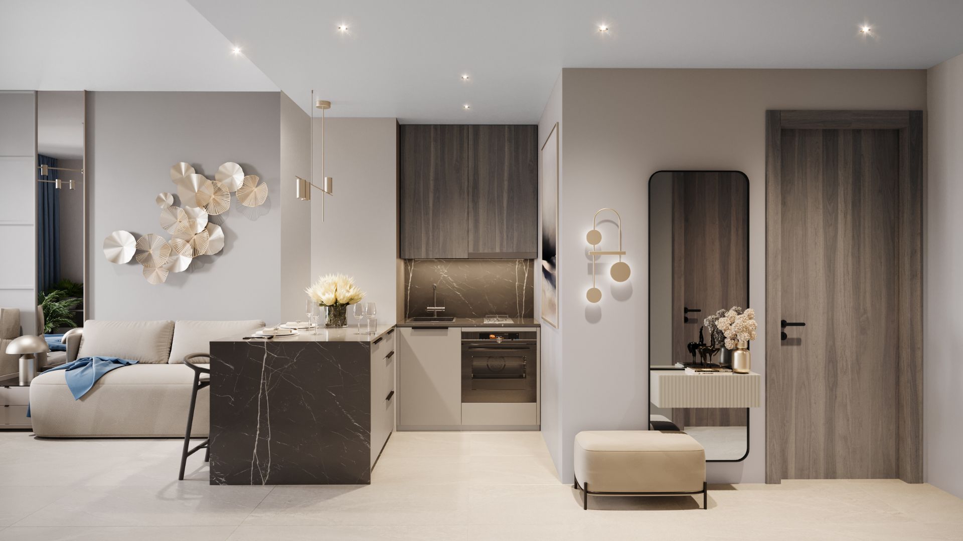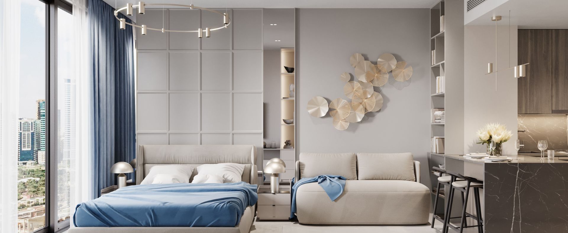 Highlights include a yoga studio, aroma room, cinematic clubhouse, sauna, outdoor fitness areas, squash court, kids’ play zones, and a wellness-themed lobby. Advanced air-purification systems complete this serene urban retreat in one of Dubai’s most connected communities.
