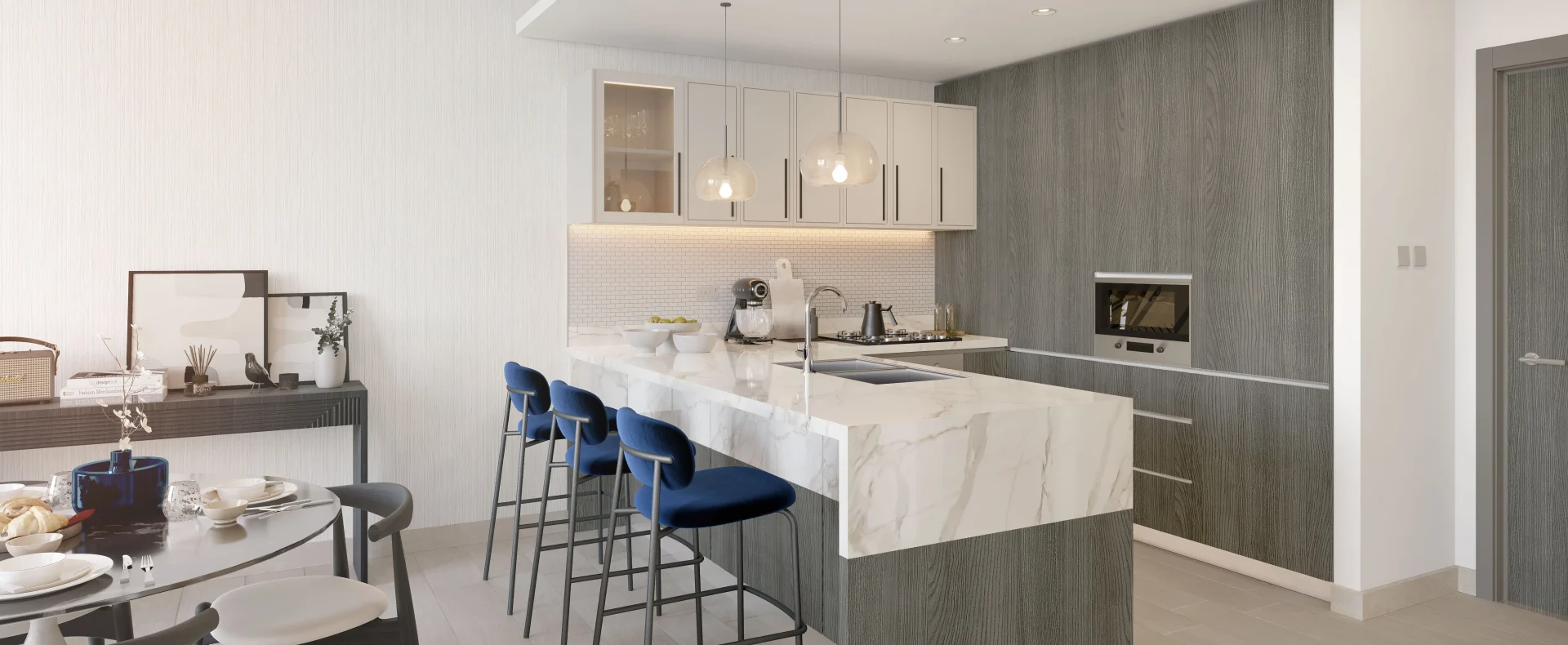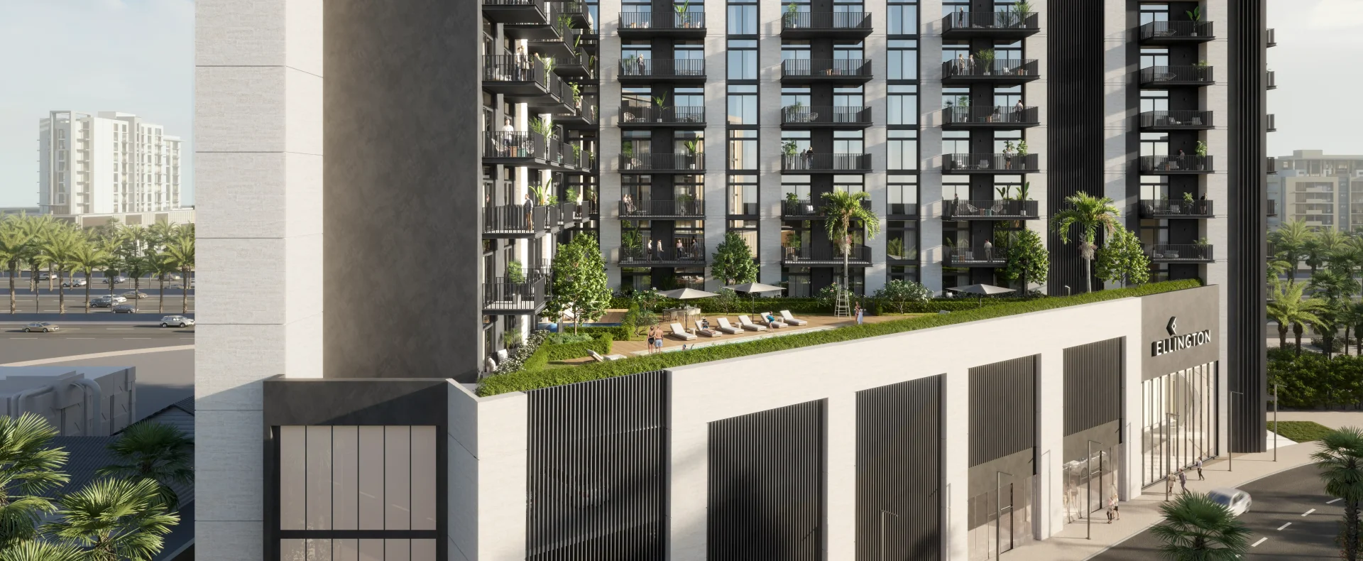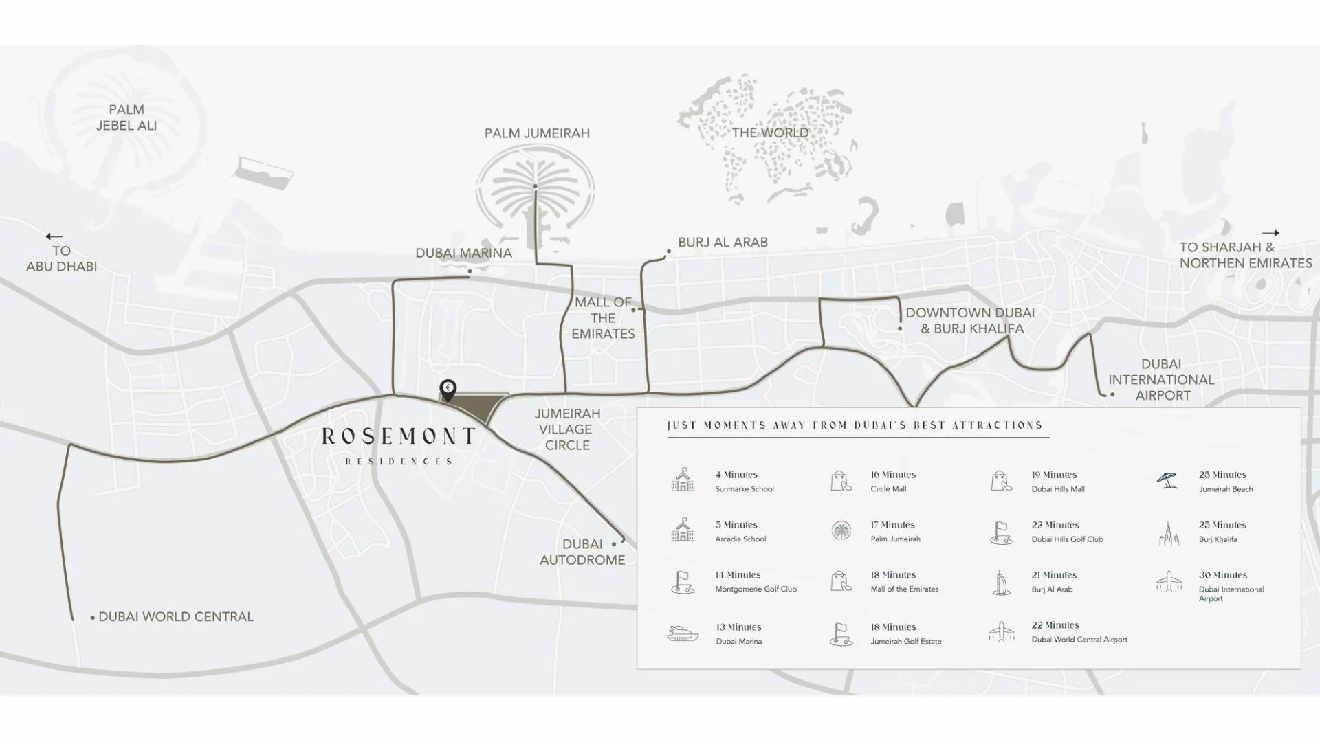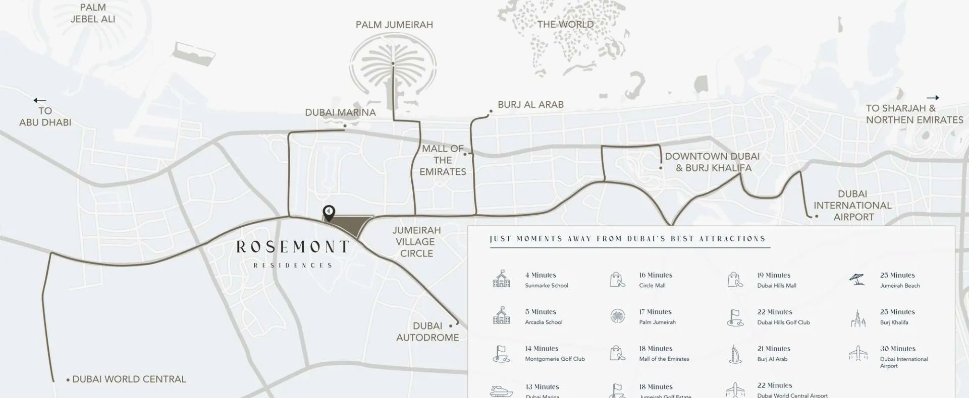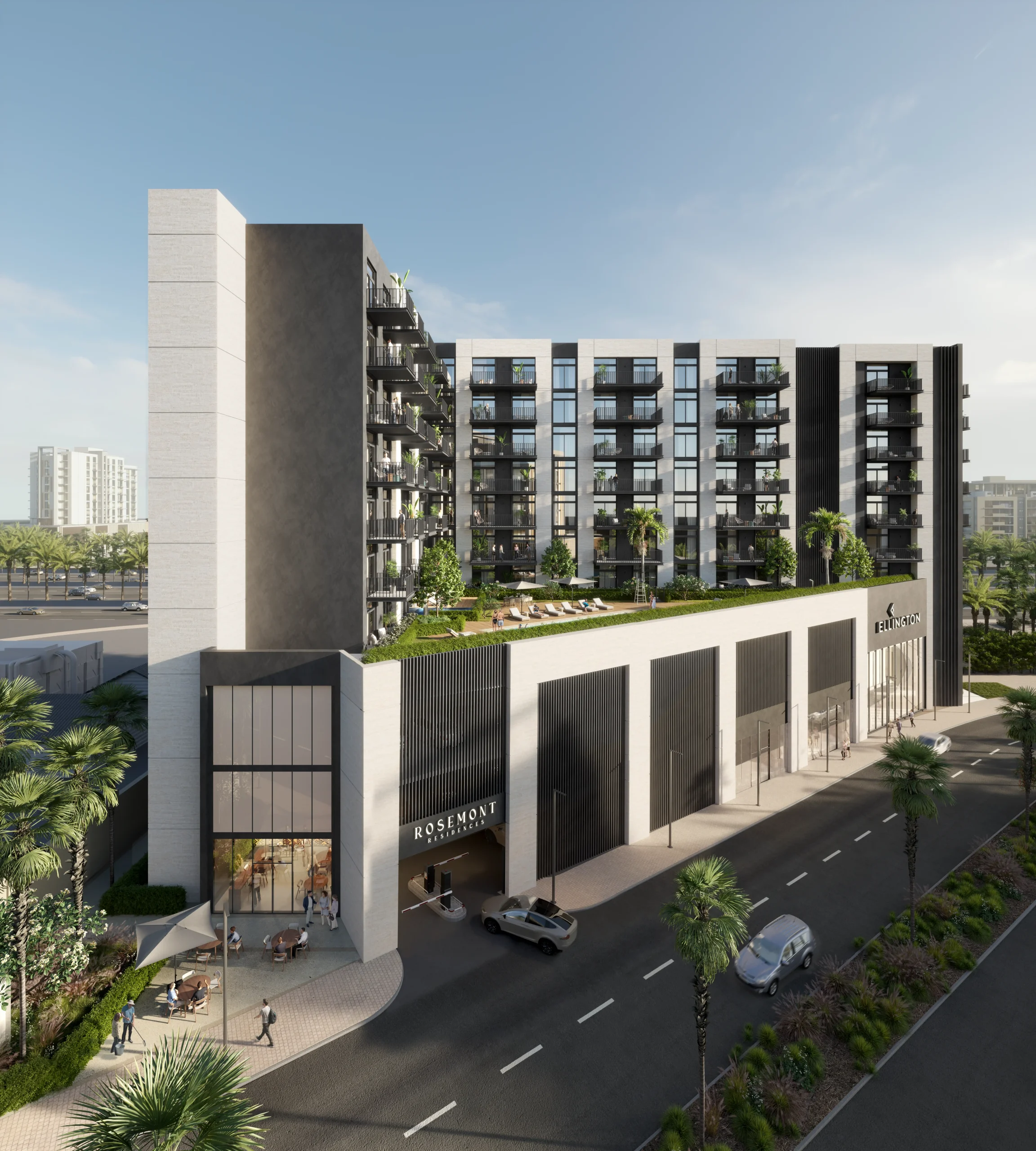 Residents enjoy thoughtful amenities including two podium-level leisure areas, swimming pools, state-of-the-art gym, BBQ areas, library, poolside cabanas, retail outlets, and family‑friendly communal parks. Designed in a minimalist, modern style with floor-to-ceiling windows and clean lines, Rosemont prioritizes tranquil, nature-infused living within one of Dubai’s family-oriented communities.