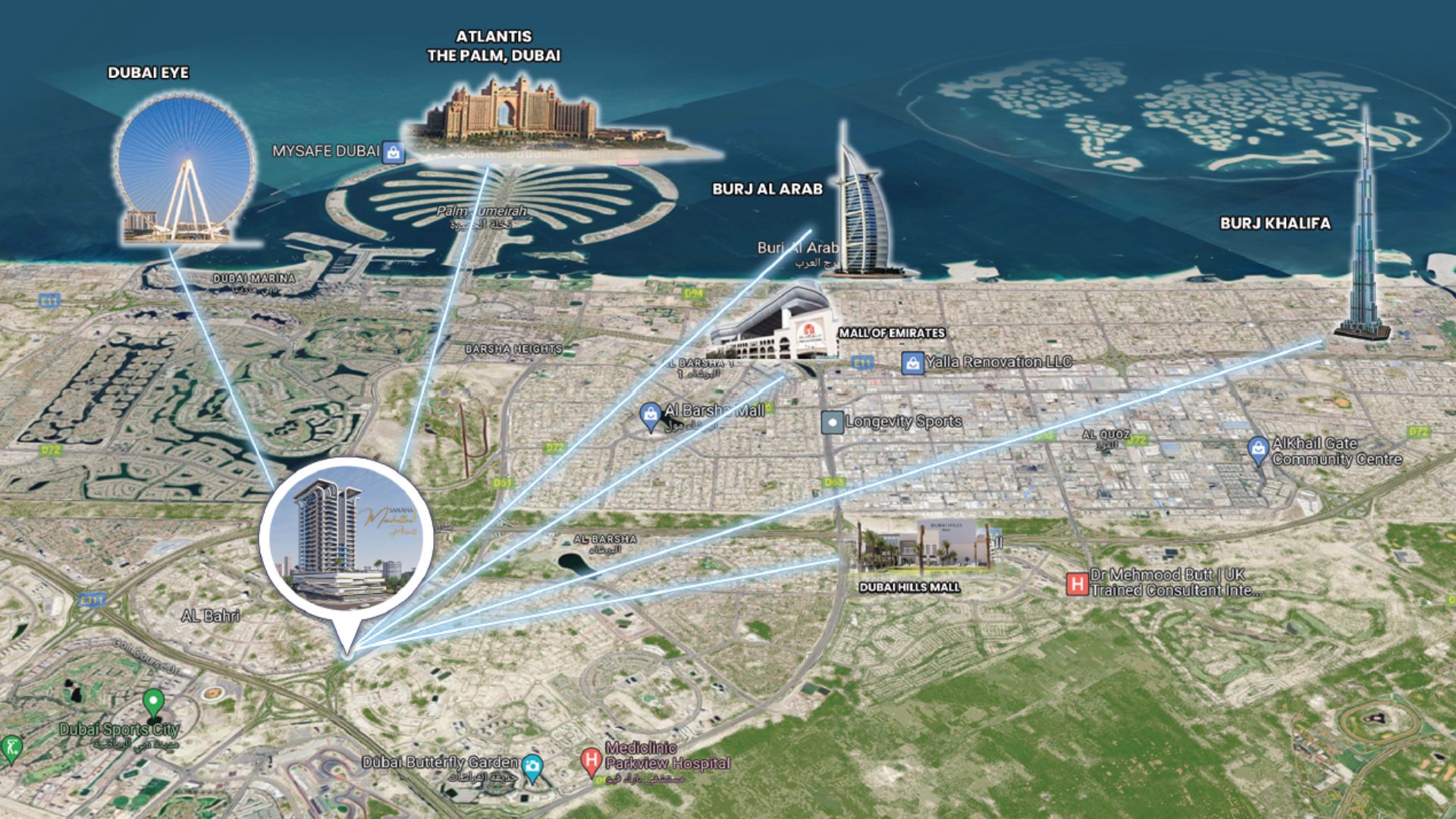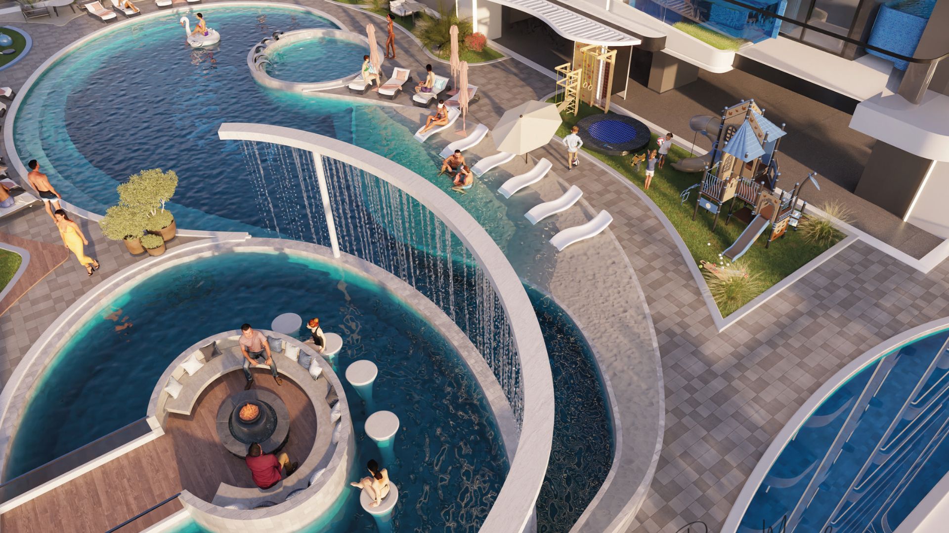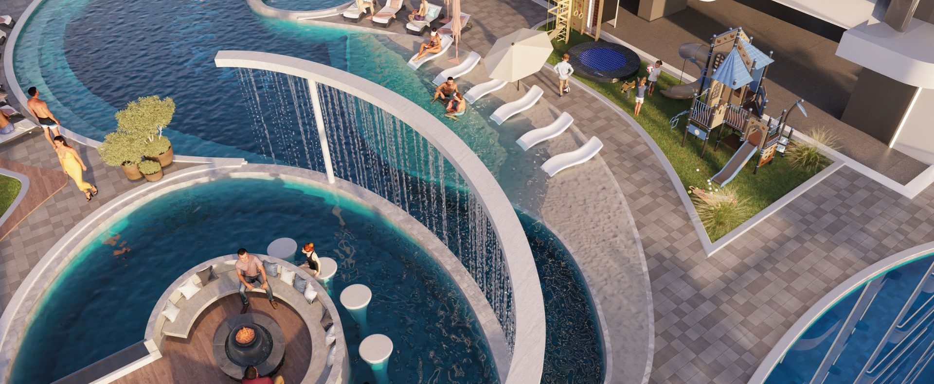 Completion is expected in Q4 2026. Amenities include a leisure pool deck, private balcony pools, rooftop jogging track, fitness center, sauna & steam rooms, kids’ play zone, outdoor cinema, and more. With its prime location near Sheikh Zayed Road, residents enjoy seamless access to Mall of the Emirates, Business Bay, Downtown, and Dubai Marina, making it highly attractive for families and investors.