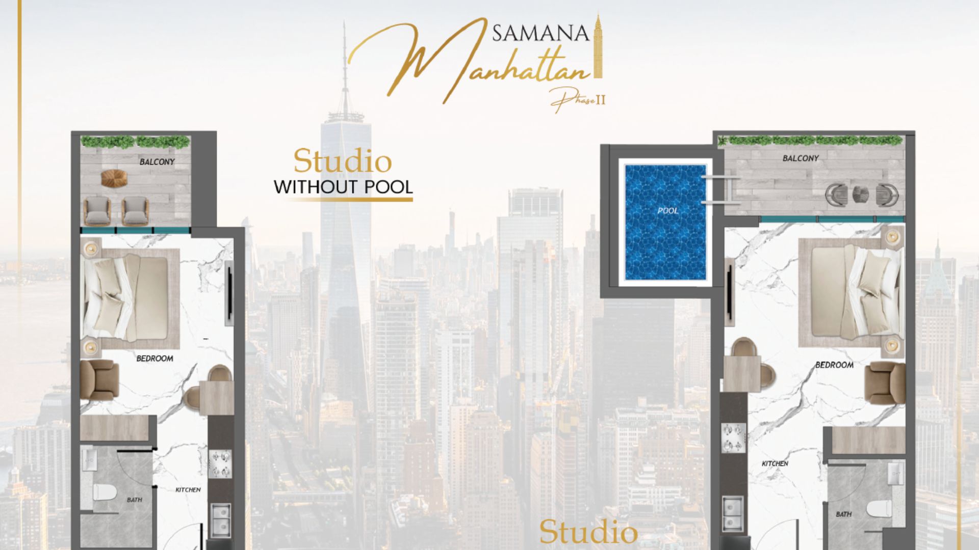 Located in Jumeirah Village Circle (JVC), Samana Manhattan 2 features studios, 1 & 2 BR apartments (398–2,283 sq ft)—each with a private pool—starting from AED 689K. Flexible payment plans include: