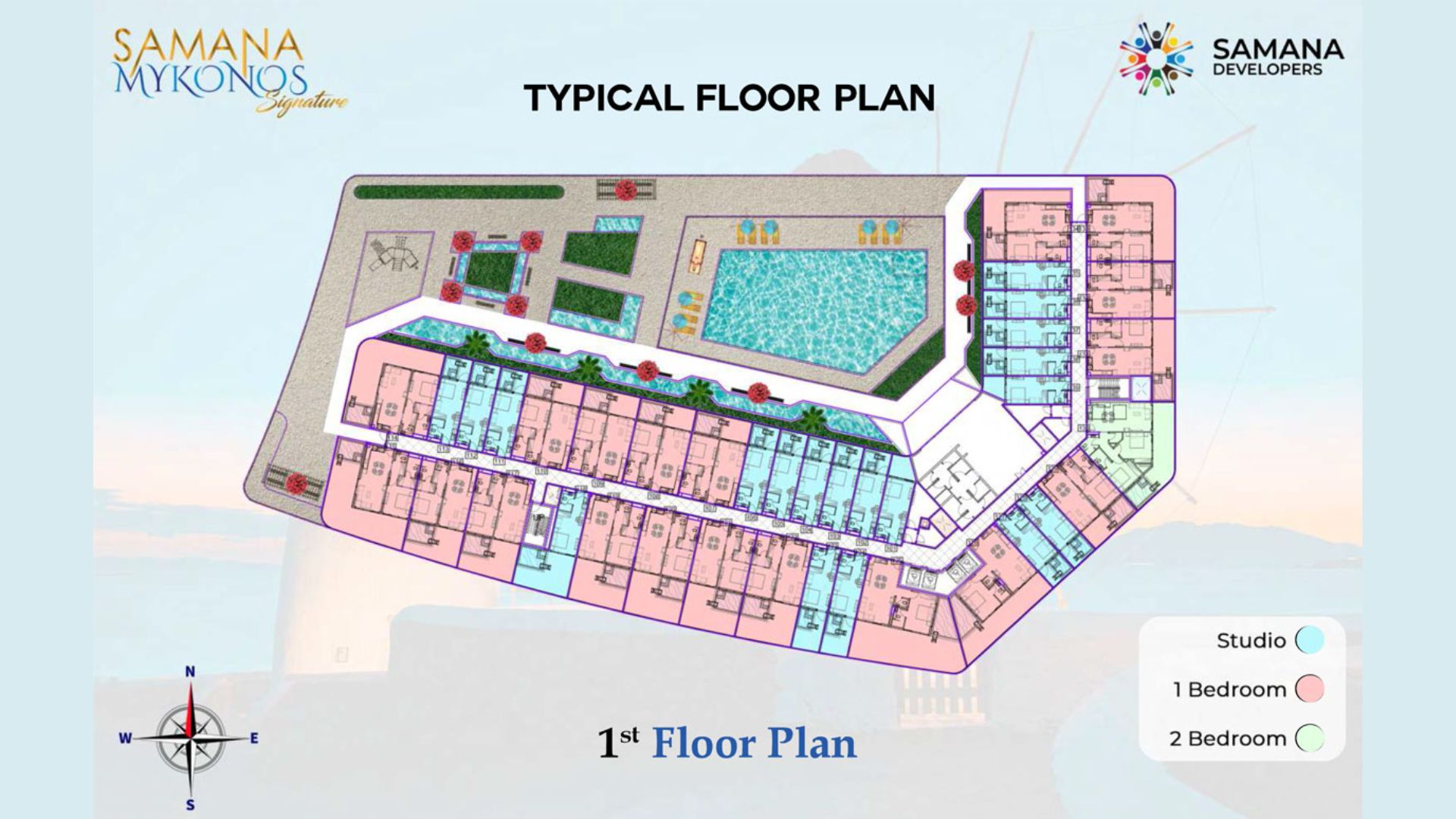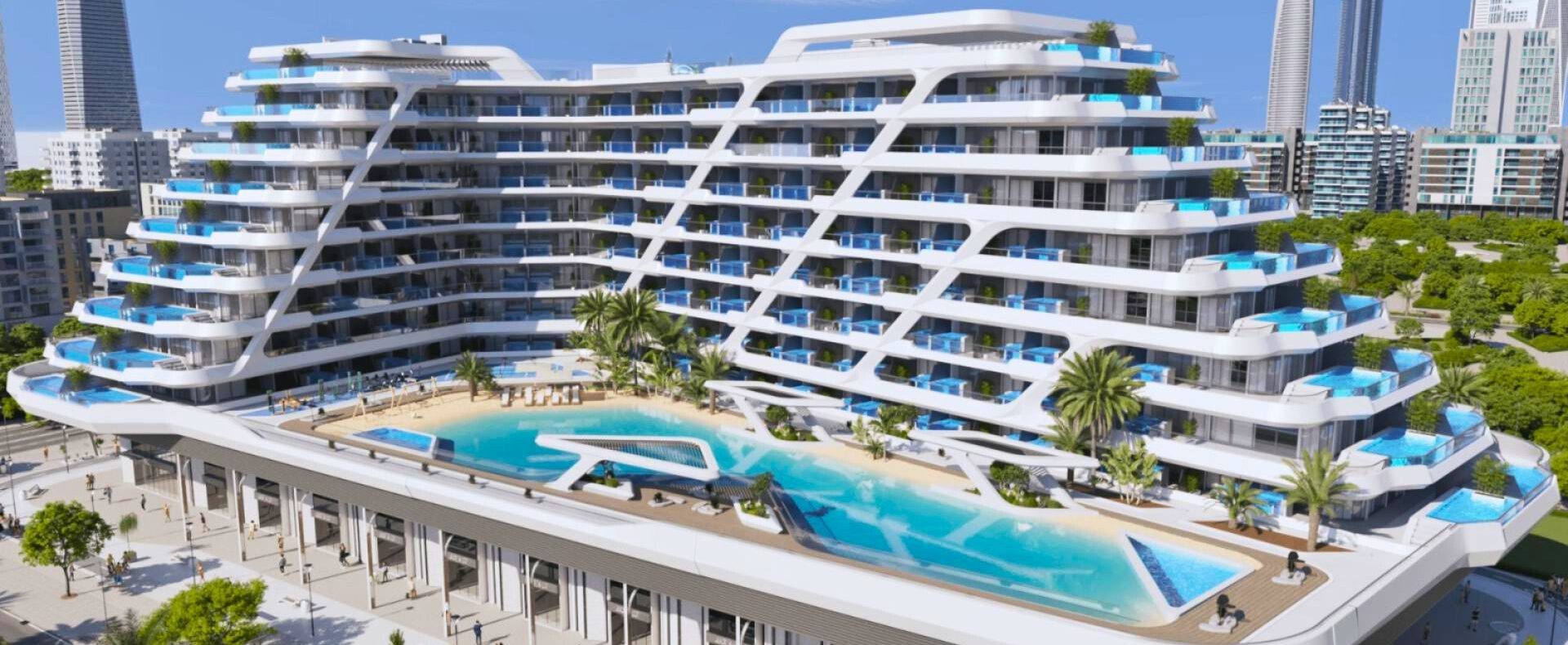 Samana Mykonos Signature, set in Arjan, Dubailand, is a sophisticated 7-storey development featuring studios, 1 & 2 BR apartments (390–1,898 sq ft) with private pools, offering a blend of Cycladic-style minimalism and luxury. Priced from approximately AED 624K, it offers a designer living concept with amenities including a rooftop pool & jogging park, indoor/outdoor gyms, kids’ play area, sauna & steam, outdoor cinema, lush urban gardens, BBQ zones, and convenient concierge services. The project launched in March 2023 with handover expected by Q4 2025, supported by a flexible payment structure: 15% at booking, followed by staggered installments and 1% monthly over a 60-month plan. Nestled near Miracle Garden and well-connected to Sheikh Zayed Road, this project offers an elegant, wellness-driven lifestyle that resonates with premium homebuyers and investors alike.