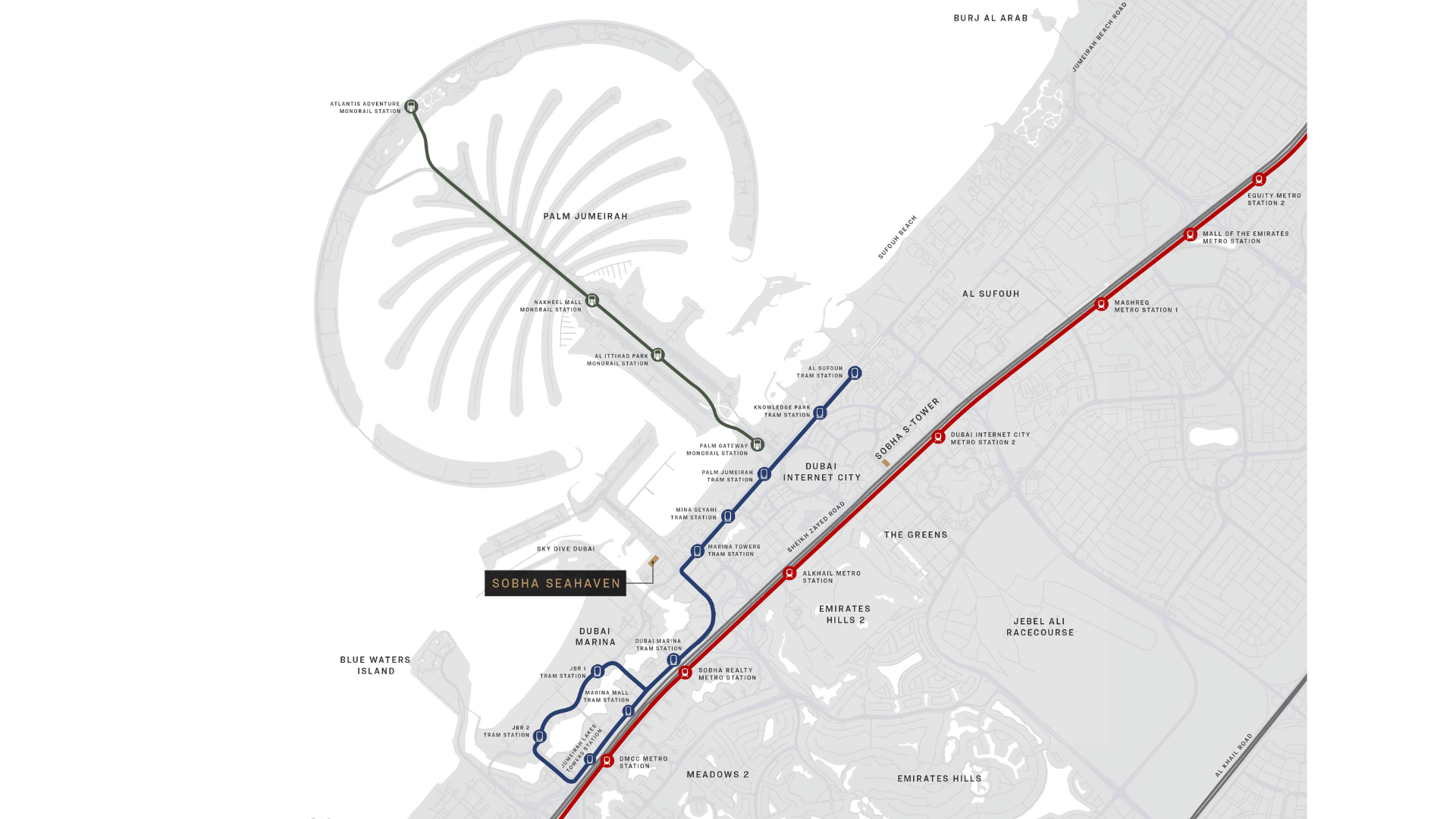 – 5 mins to Palm Jumeirah & Dubai Marina