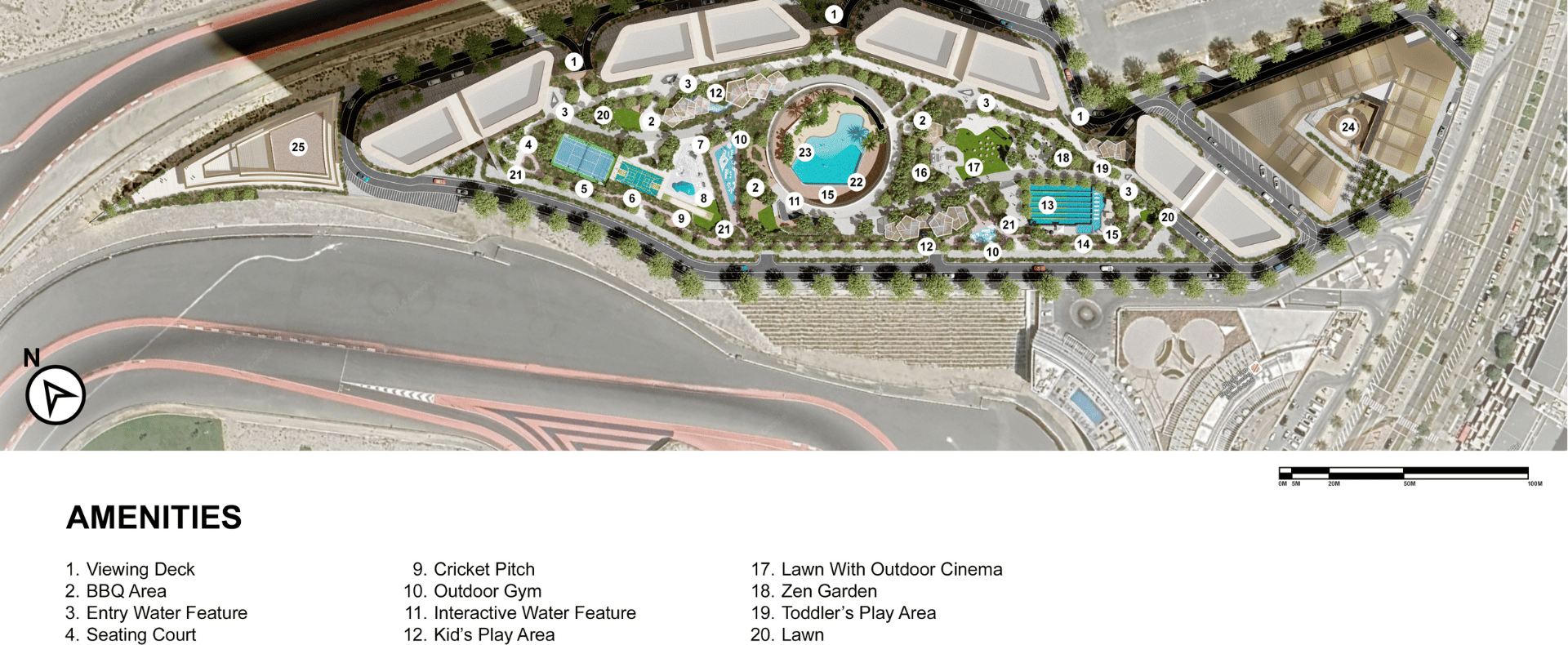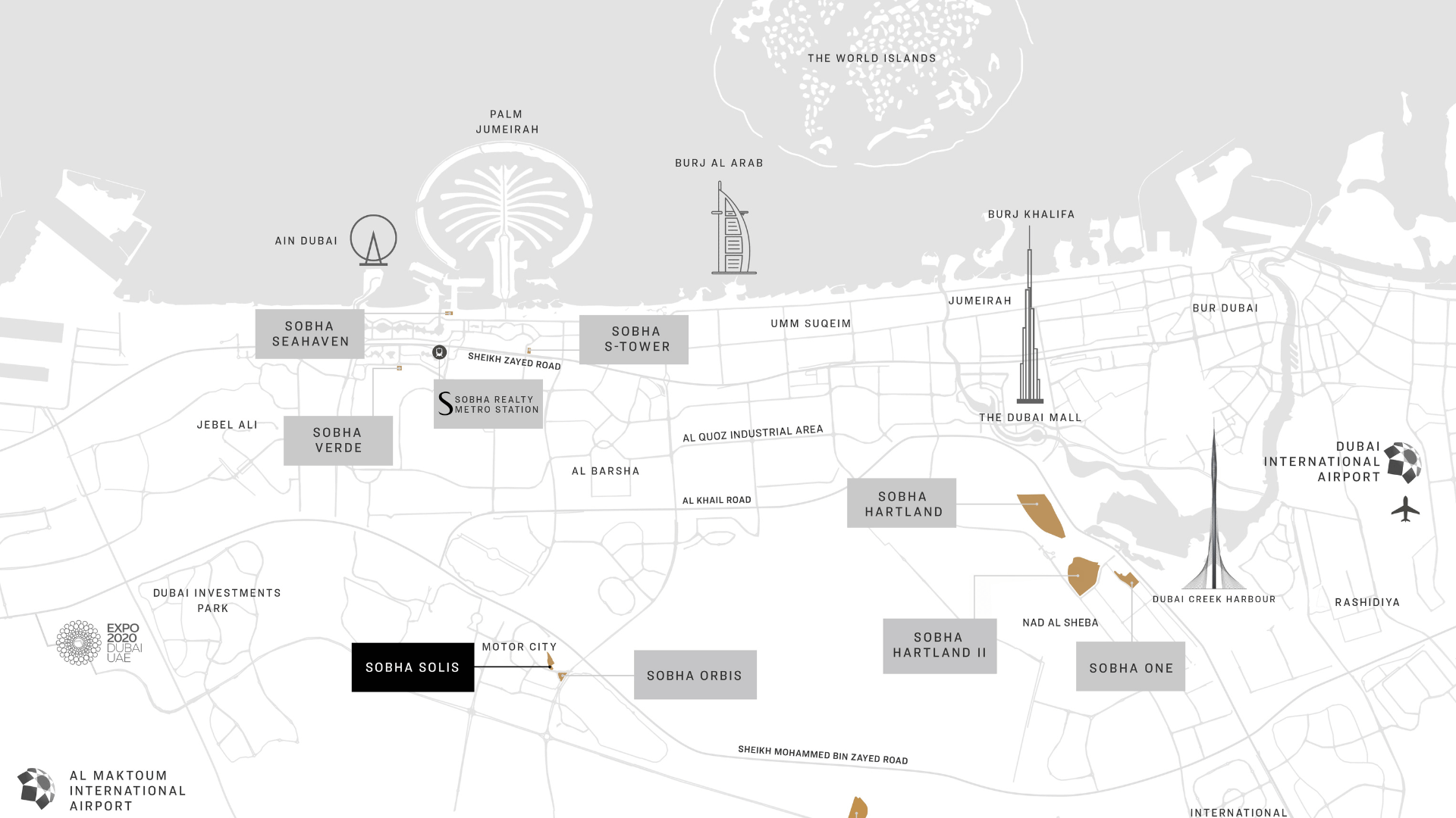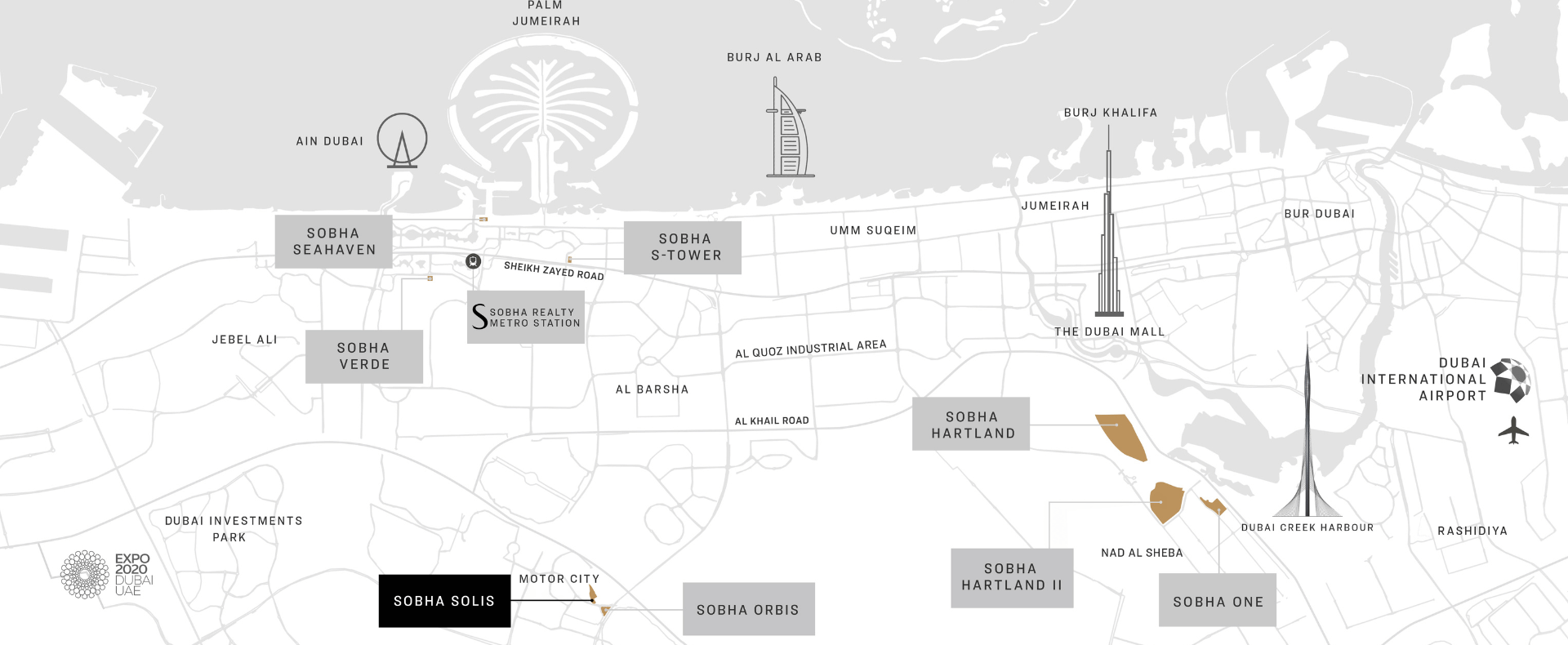 Dynamic Lifestyle Setting: Positioned near motorsports, leisure, retail, and green spaces, Sobha Solis targets active lifestyles and families.